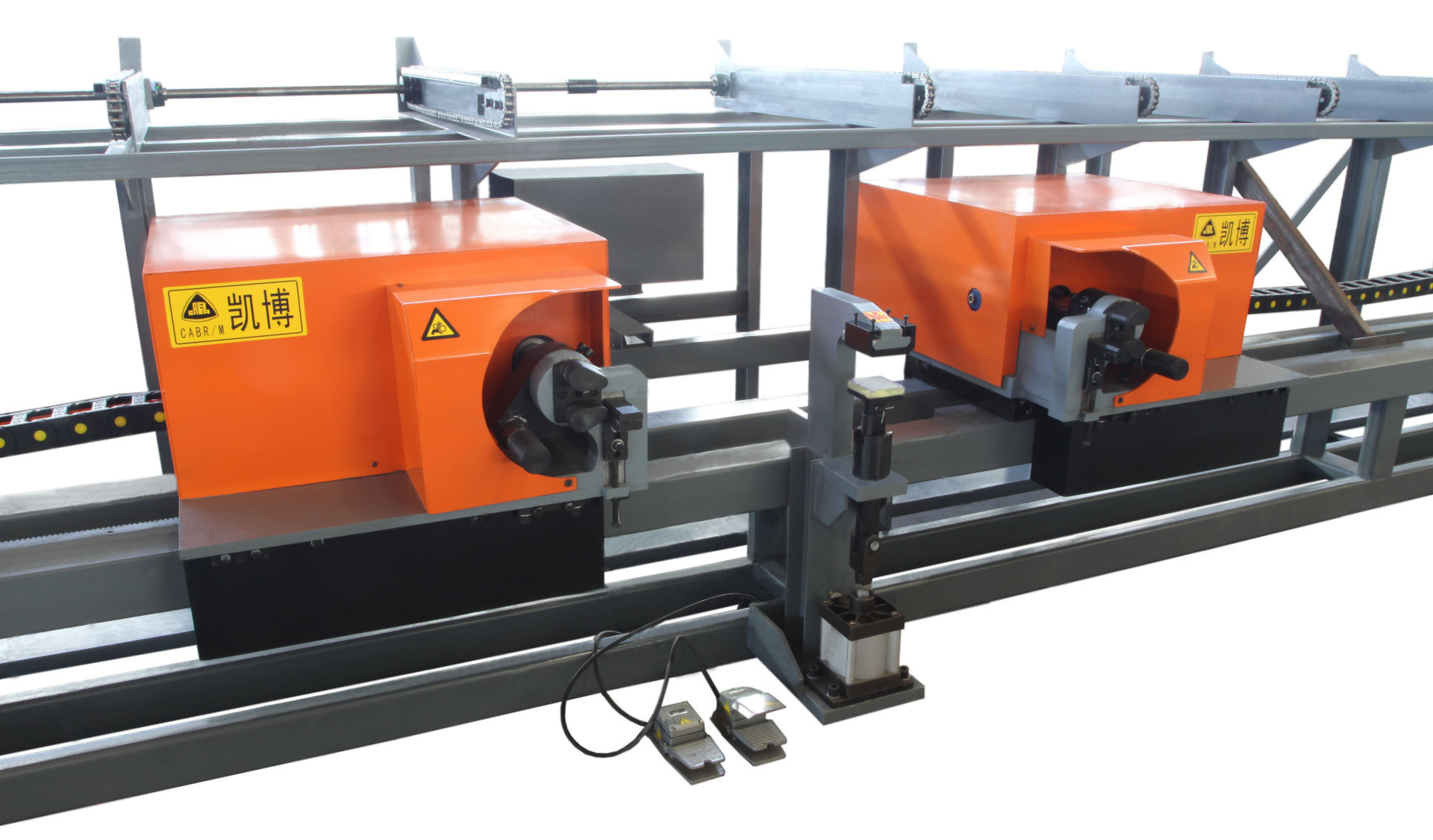 用于Φ10-Φ32鋼筋雙向同步彎曲的自動化鋼筋彎曲設(shè)備。適用于鋼筋集中加工工廠,尤其是高速鐵路、公路的梁場中批量鋼筋彎曲加工。