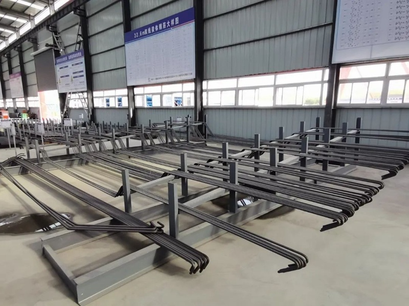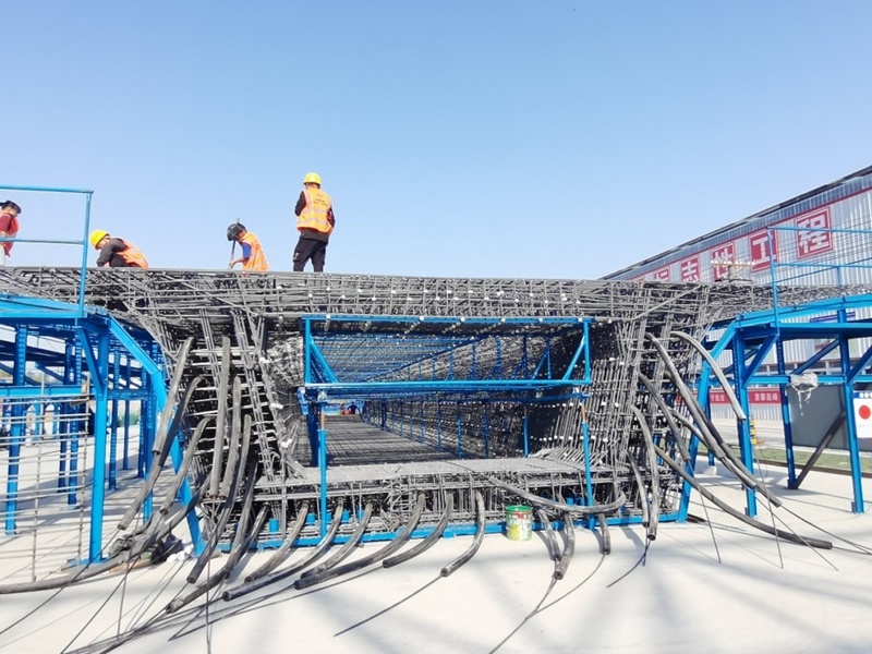 廊坊凱博建設(shè)機械科技有限公司(凱博科技)依托北京建筑機械化研究院有限公司在鋼筋加工機械領(lǐng)域多年的技術(shù)積累,針對高鐵箱梁預(yù)制施工各環(huán)節(jié)對鋼筋制品的差異化需求,潛心研究、精心攻關(guān),按照中鐵十一局集團橋梁有限公司項目需求,助力新建首個滬渝蓉項目武宜段WYZQ-5標荊門鐘祥制梁場。其中鋼筋加工數(shù)字化項目,包含GQX-300數(shù)控鋼筋剪切生產(chǎn)線、GWXL2-32D數(shù)控彎曲中心、GWXL4-25D數(shù)控彎曲中心、GQX-GWX-25數(shù)控鋼筋剪切彎曲一體生產(chǎn)線、GGJ12數(shù)控鋼筋彎箍機、GT5-12調(diào)直機(32米)、GTWQ12調(diào)直五機頭、HJDW12焊接定位網(wǎng)等多種設(shè)備,可定制化生產(chǎn)高鐵箱梁預(yù)制施工各環(huán)節(jié)多種鋼筋制品。