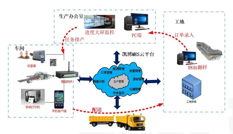 并且,凱博科技攜手中國鐵道科學研究院集團有限公司,開發(fā)凱博鋼筋加工管理軟件系統(tǒng)和鋼筋加工遠程控制系統(tǒng),打造智能控制中心。鋼筋加工管理軟件系統(tǒng)以鋼筋加工過程中物資流管理為核心,借助工業(yè)互聯(lián)網(wǎng)、云服務(wù)、智能設(shè)備等技術(shù)手段,實現(xiàn)多項目多任務(wù)遠程訂單管理,實現(xiàn)訂單排產(chǎn)、生產(chǎn)訂單分發(fā)、生產(chǎn)標牌打印、成品完成報工,成品出入庫等功能,同時能夠以電子大屏實現(xiàn)項目訂單動態(tài)實時監(jiān)控、加工廠整體運營狀態(tài)的中心化顯示。鋼筋加工遠程控制系統(tǒng),可實時顯示加工場各種設(shè)備生產(chǎn)狀態(tài),同時實現(xiàn)中控室對現(xiàn)場設(shè)備啟動和停止的遠程控制,造就了高鐵梁場鋼筋加工數(shù)字化新模式!